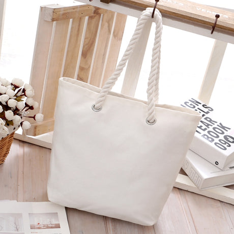 Recycled Organic Canvas Tote Beach Cotton Bag with Rope Handle.