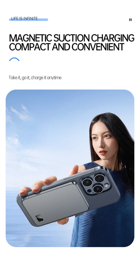 Ultra Thin MagSafe Wireless LED Display Fast Charging Power Bank for iPhone Samsung And Airpods