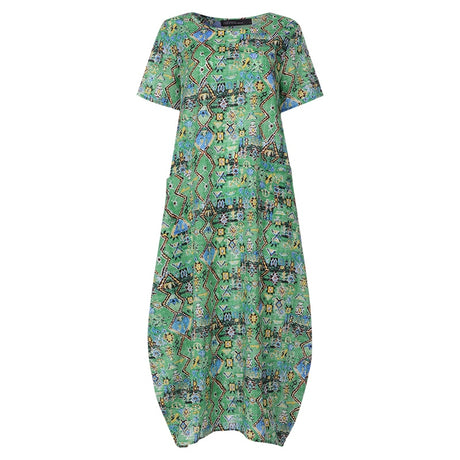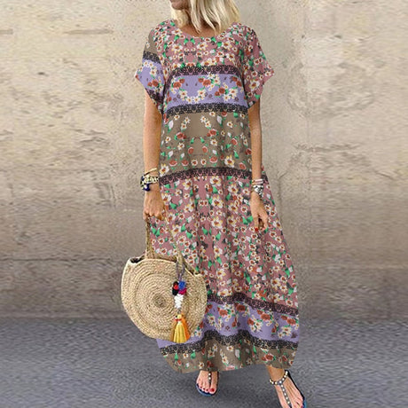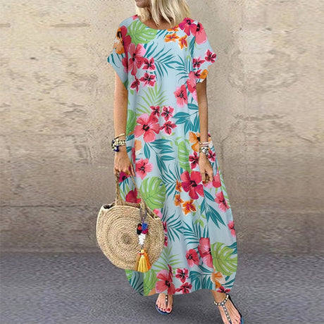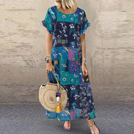 Women's ZANZEA Summer Bohemian Long, Short Sleeve Floral Print Sundress.