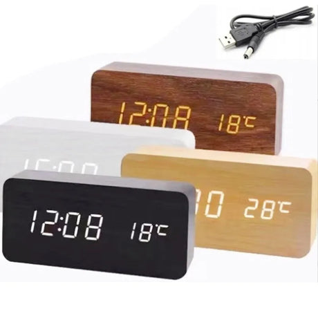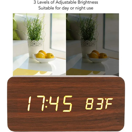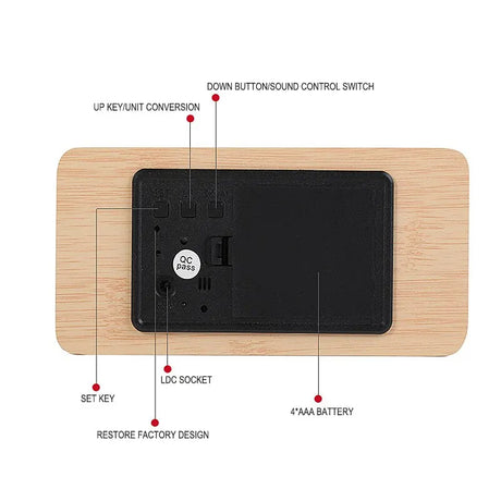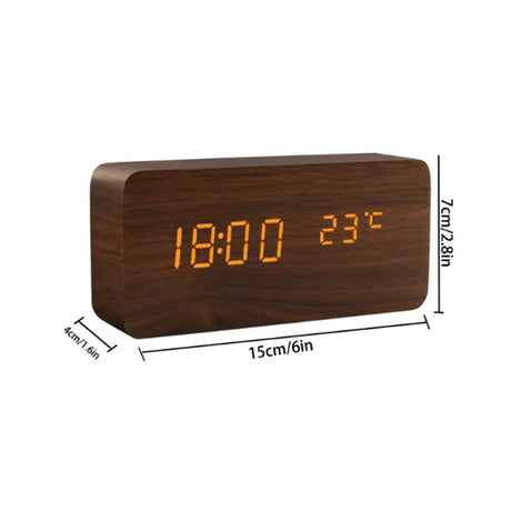 Wooden Digital Multi-Function LED Alarm Clock With Temp.