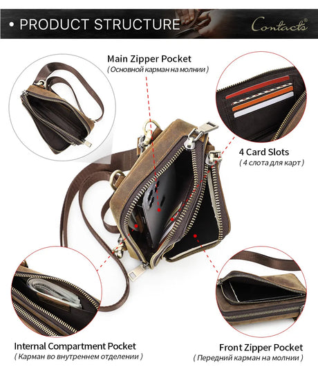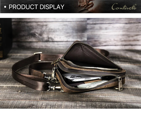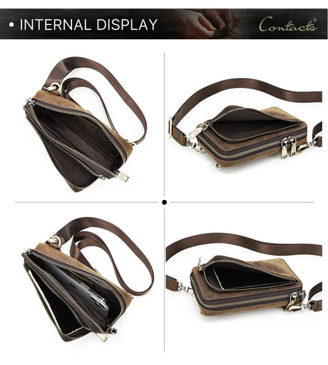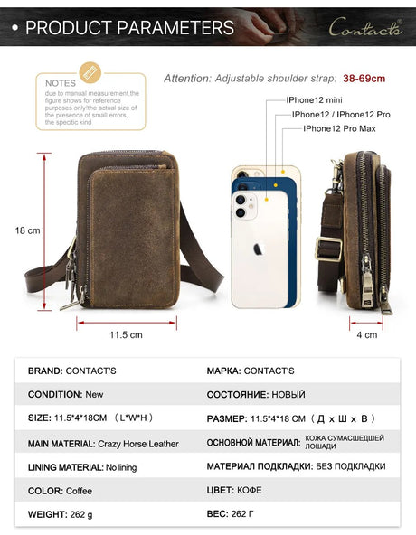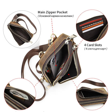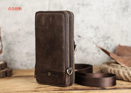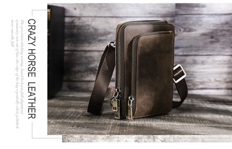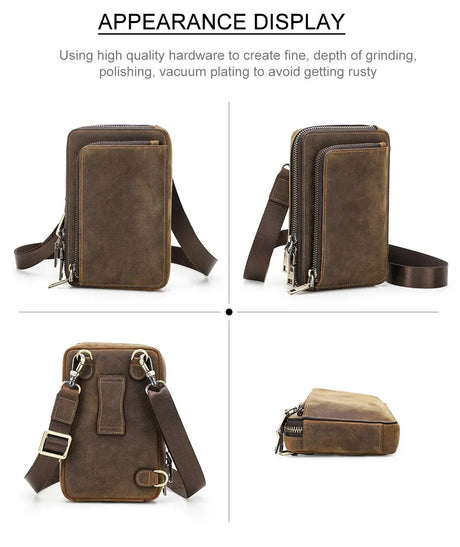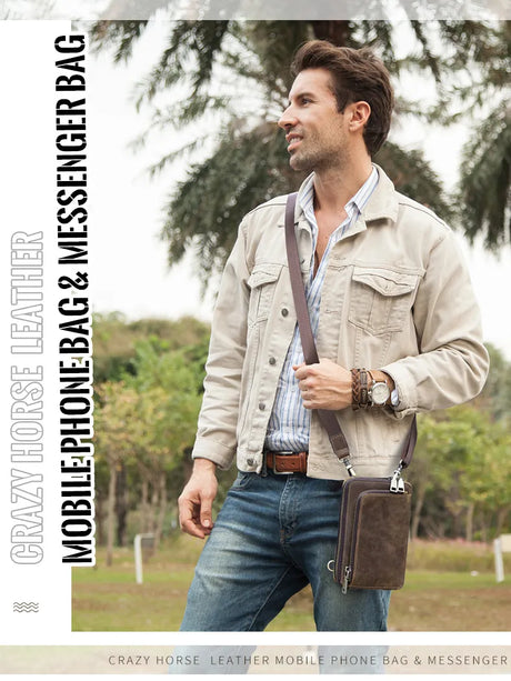 2023 Men's Leather Crossbody Bag With Mobile Phone Pouch.