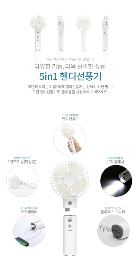 5in1 Portable Handheld USB Multi-Function/Bluetooth Fan With Power Bank