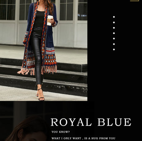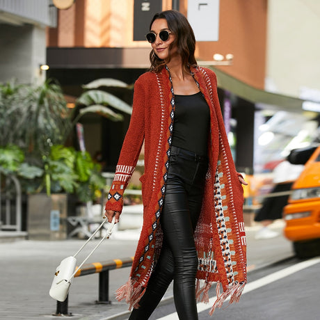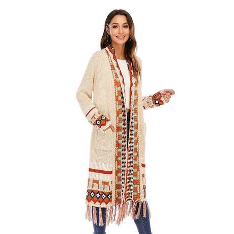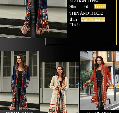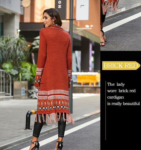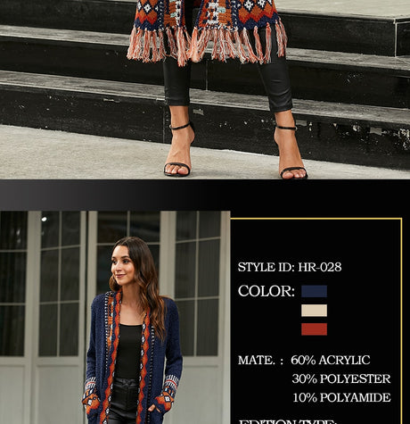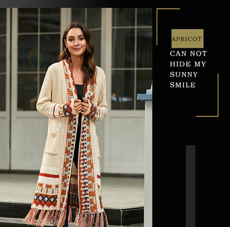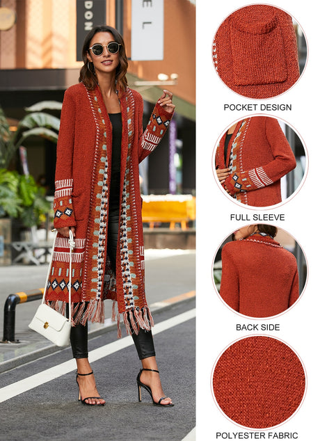 CGYY Long Sleeve Knitted Plaid Open Front Sweaters with Fringe Tassel.