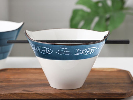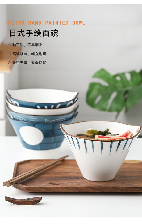 Ceramic Hand painted Japanese Style Noodle Bowl.