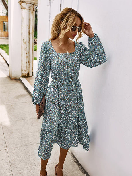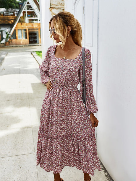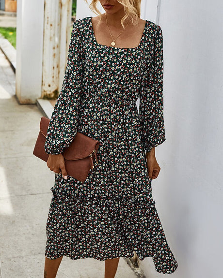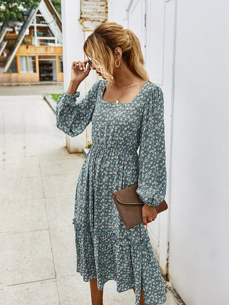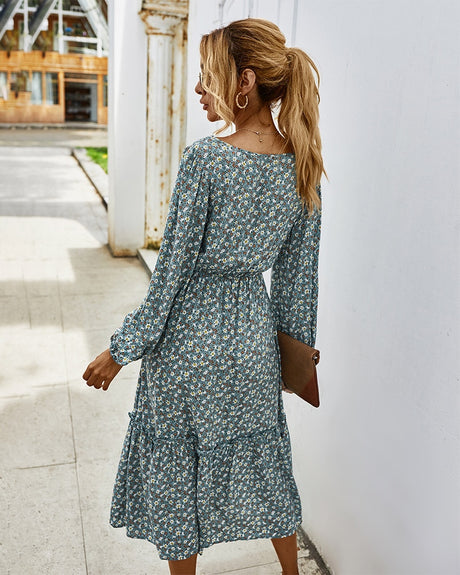 Elegant Ladies Long Sleeve Flower patterned Dress.