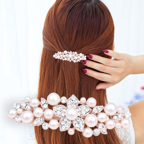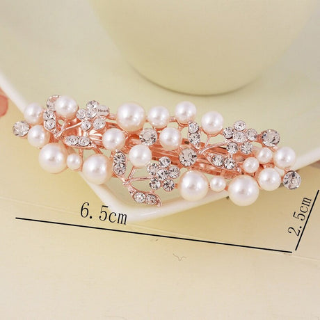 Elegant Imitation Pearl with rhinestones metal hair clip.