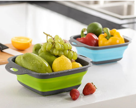 Foldable Square Vegetable Fruit Strainer Basket with Handle