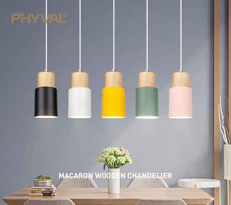 Nordic Wood Pendant Lights. E27 220V for Dinning Room, Kitchen or restaurant decoration.