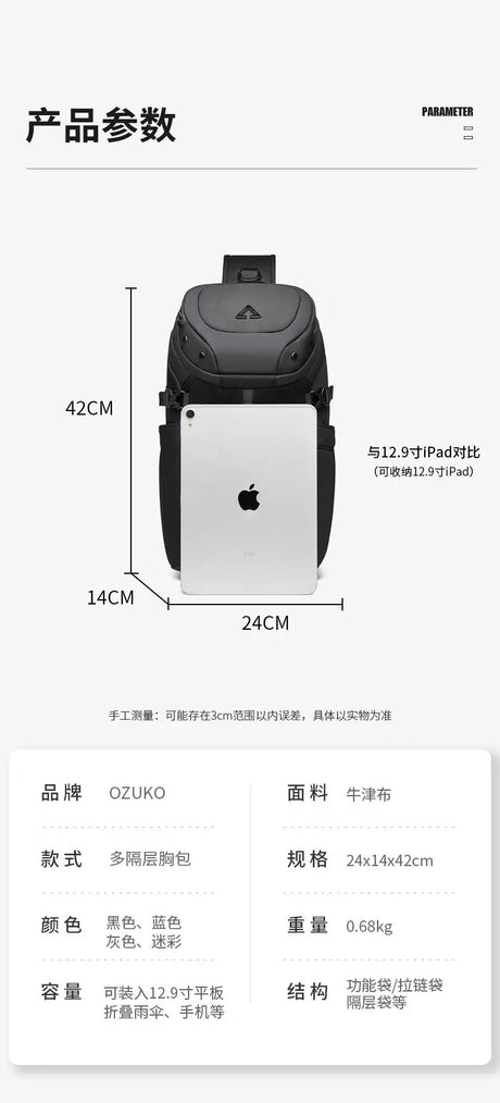 OZUKO Multifunction Waterproof Anti-theft Crossbody Bag for Men And Women