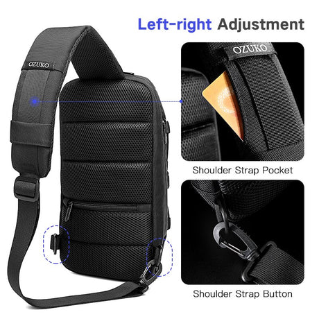 Ozuko Men and Women's USB Waterproof Crossbody Anti-Theft Chest Bag