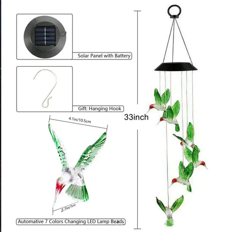Outdoor Solar Charging Waterproof Hummingbird/Owl Wind Chime Light