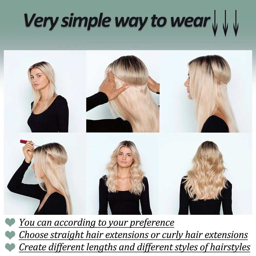 No Clips Natural Hair Extension Synthatic Artificial Long Straight Hairpiece Blonde Black Mixed Color False Hair Piece For Women