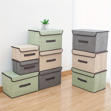 1pc Linen Fabric Storage Box With Lid.