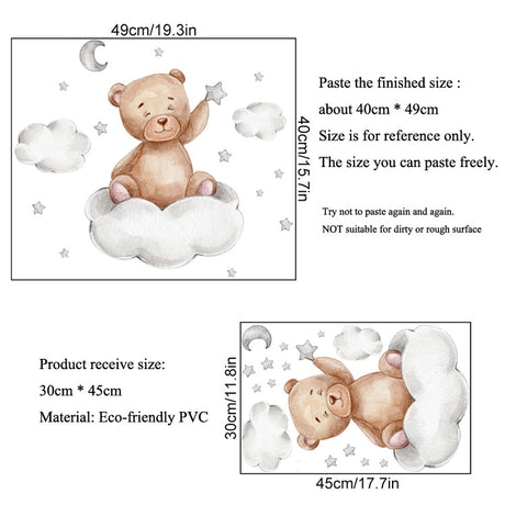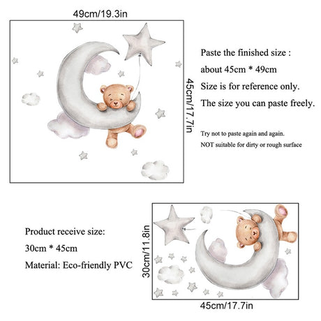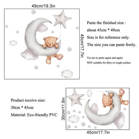 Wall Stickers For Your Nursery Of Bears, Clouds, Stars and Moon.