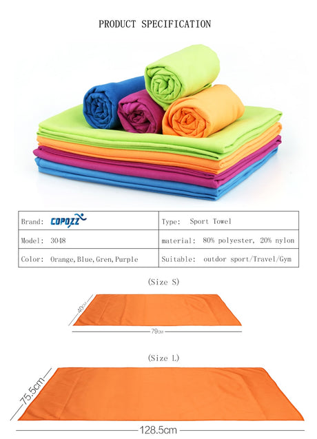 Copozz Microfiber, Easy Drying Small OR Large Travel Towel.