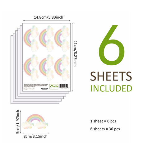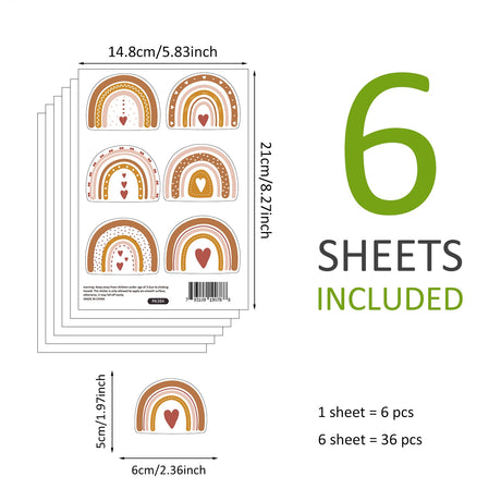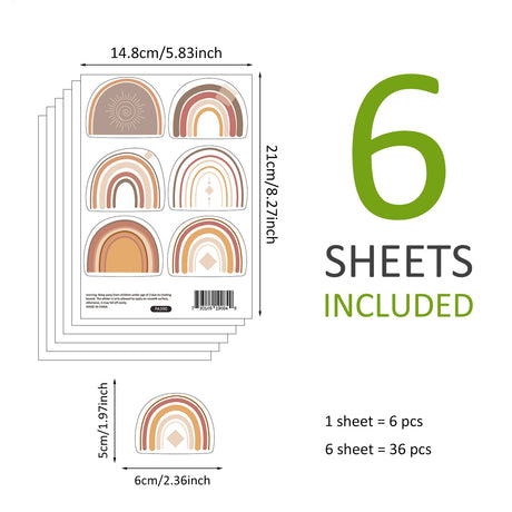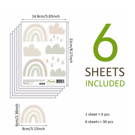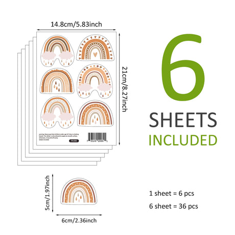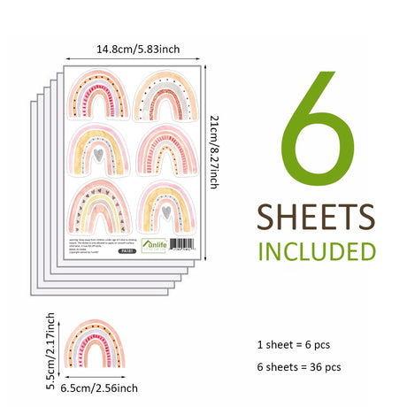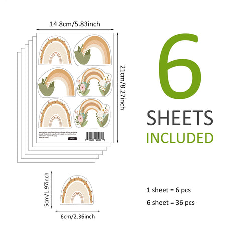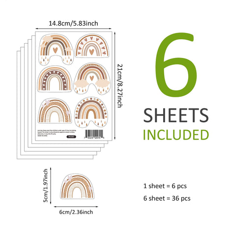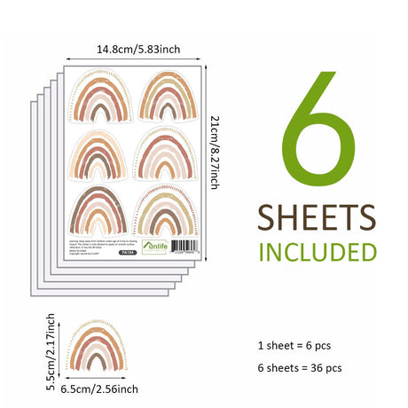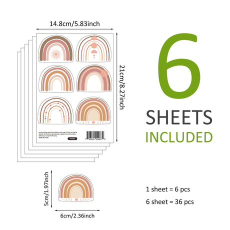 36 Pcs Rainbow Vinyl Decorative Wall Stickers.
