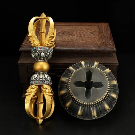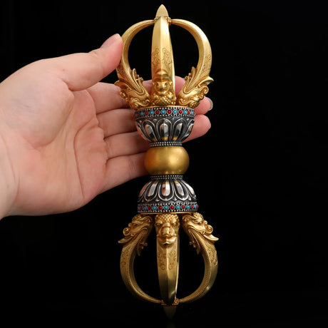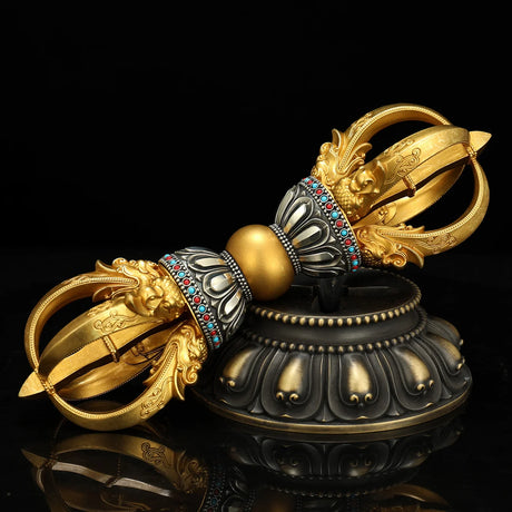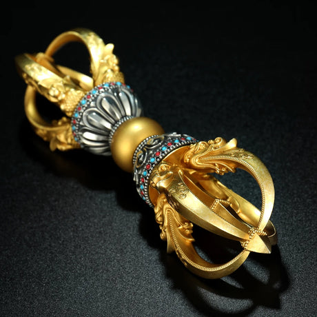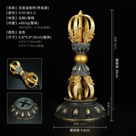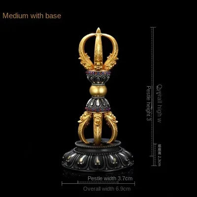 Wugu Tibetan Tantric Silver/Brass Diamond Demon Pestle Figurine with Base
