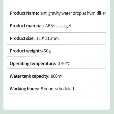 Ultrasonic/Anti-Gravity Cool Mist Water Droplet Air Humidifier with LED Night Light
