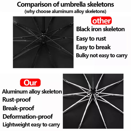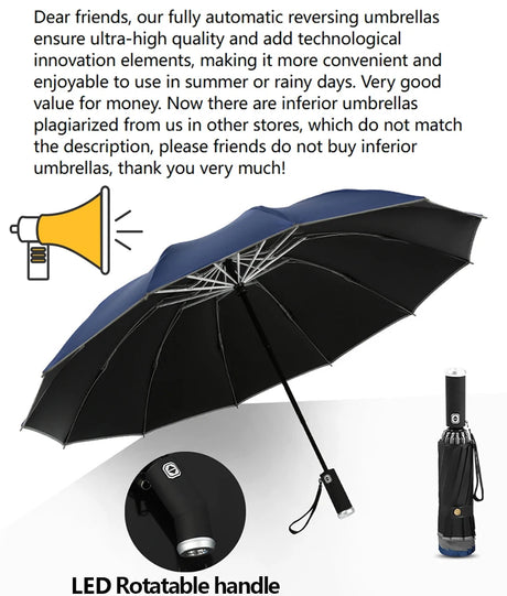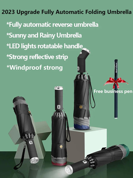 Fully 10 Ribs Windproof Automatic Reverse Folding UV Protected Umbrella With LED Flashlight
