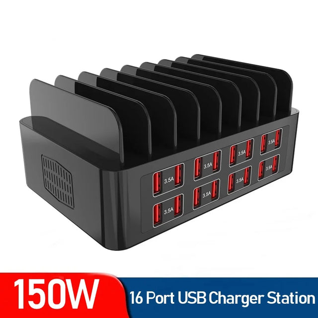 150W Universal Multi 16 Port USB 3.5A Fast Charging Station For Iphone Ipad Samsung Xiaomi Tablet