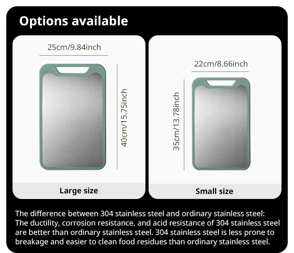 • Stainless steel and plastic material :The board is made of high-quality stainless steel and durable plastic, ensuring long-lasting use.