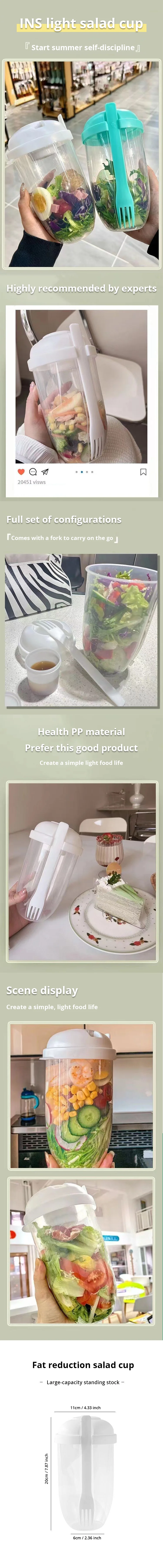 • Portable and Convenient :Take your favorite salad on-the-go with this portable bottle salad container. It's perfect for lunch or picnics.