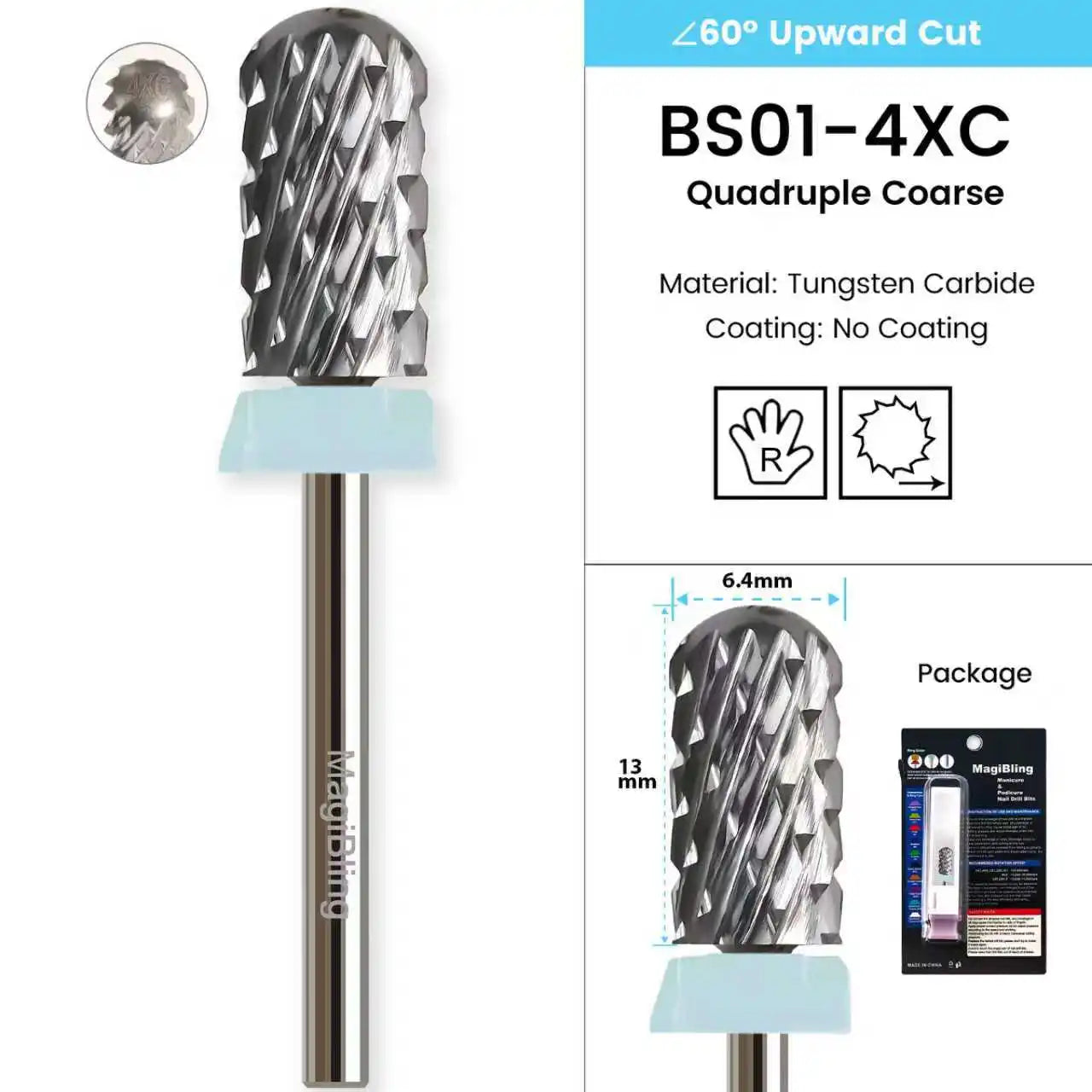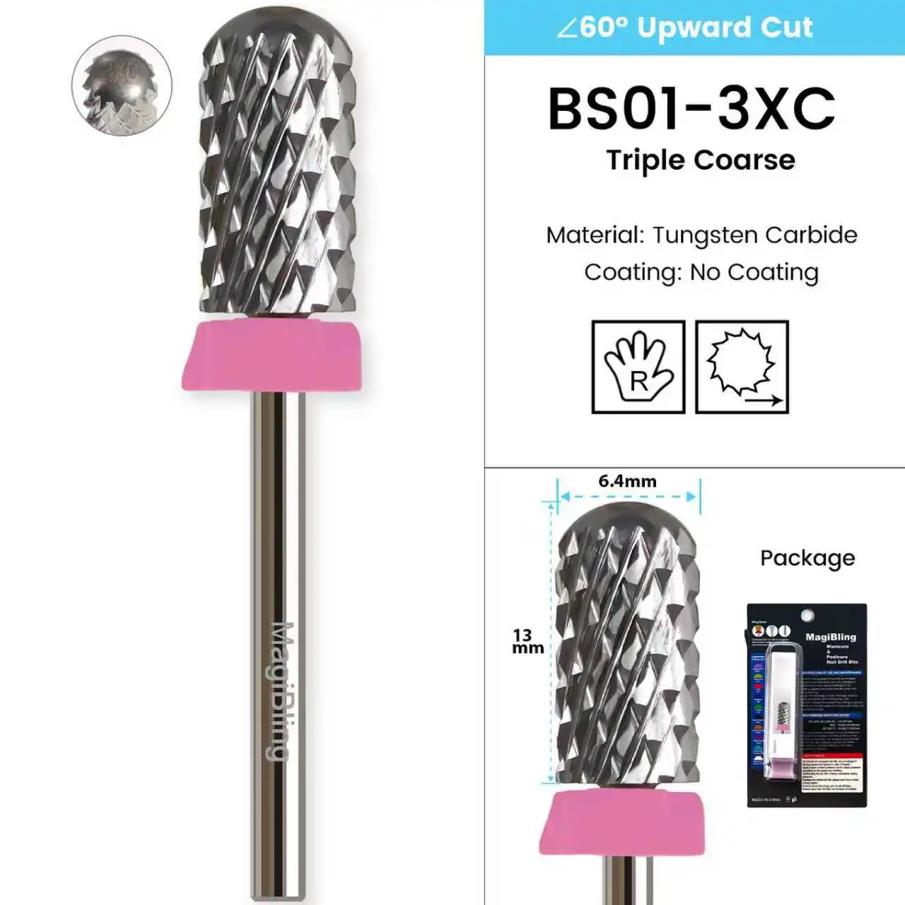 3/32" MagiBling Professional Manicure Nail Drill Bits for Hard Acrylic Gel