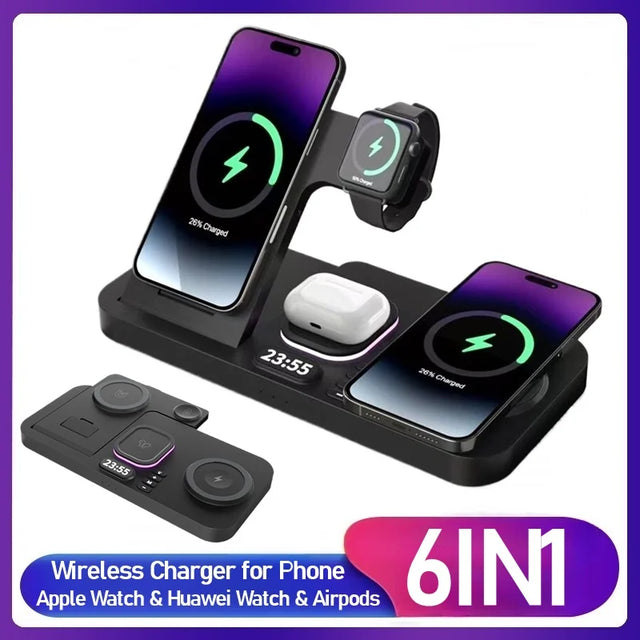 30W Clock Wireless Charger 6in1 RGB Night Light Fast Charging Station for Smartphone Airpods Pro Huawei Apple Watch Stand