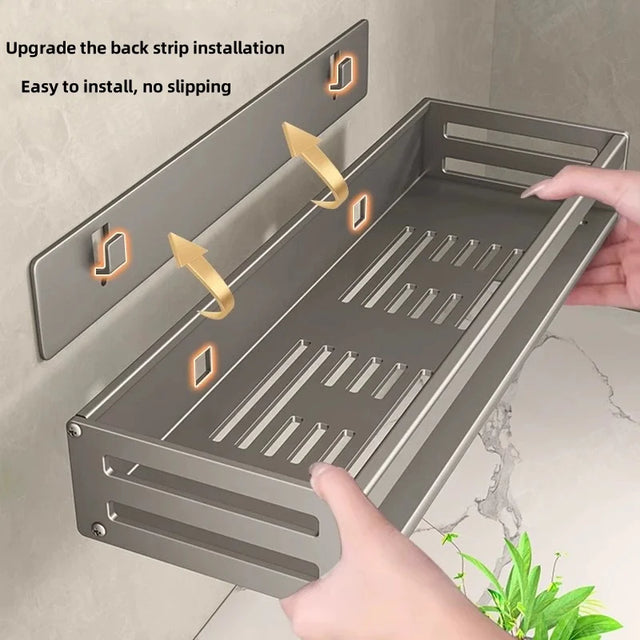 Aluminum Bathroom/Kitchen Shelf For Accessories With Towel Bar