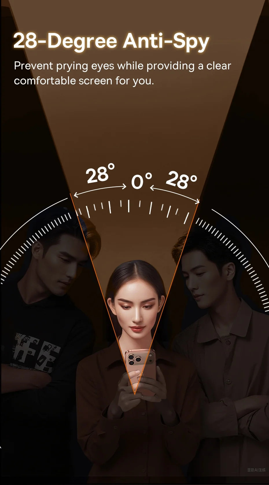1. 28° Anti-Spy Angle: No blurs from the front while blocking view from the side