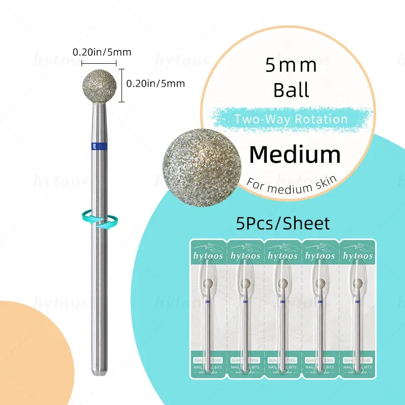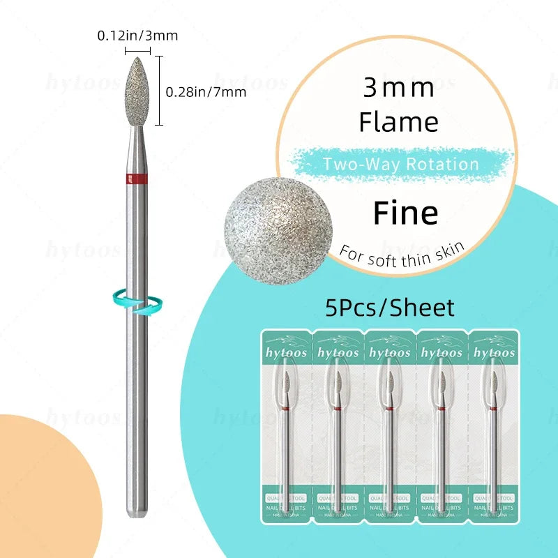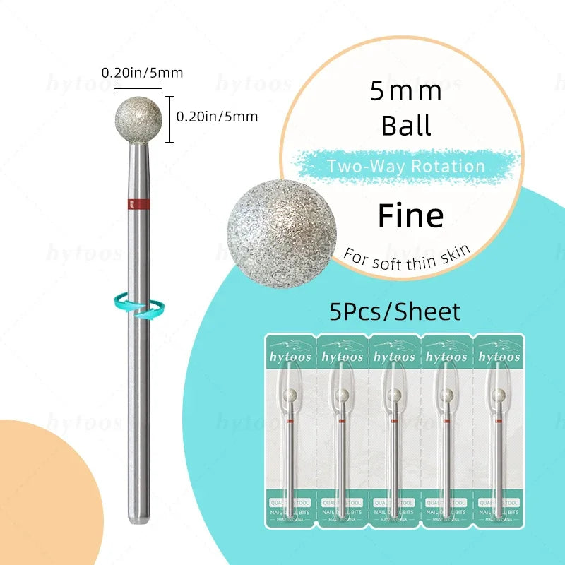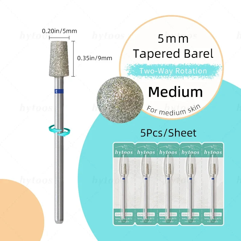 HYTOOS 5Pcs/Set Diamond Nail Drill Bits To Clean Cuticles And Nails