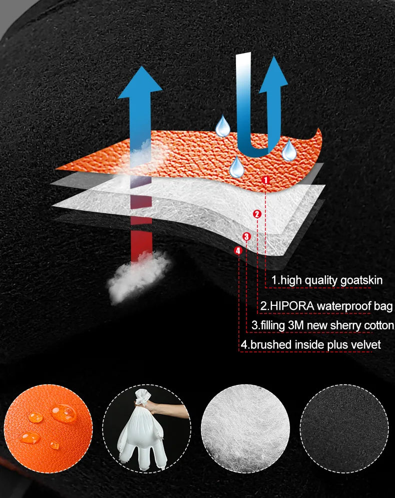 KUTOOK Men's Goatskin Leather Waterproof Thermal Gloves