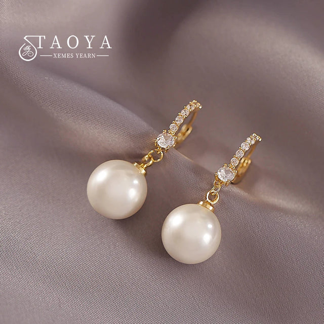 Lady's Elegant Pearl Pendant Earrings - Gold-color is backordered and will ship as soon as it is back in stock.