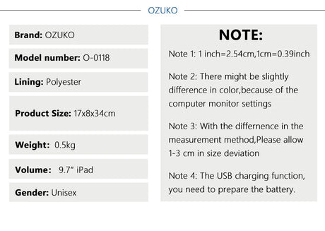 OZUKO Quality Multifunction Waterproof Anti-theft Crossbody Bag With 3 Digit Lock