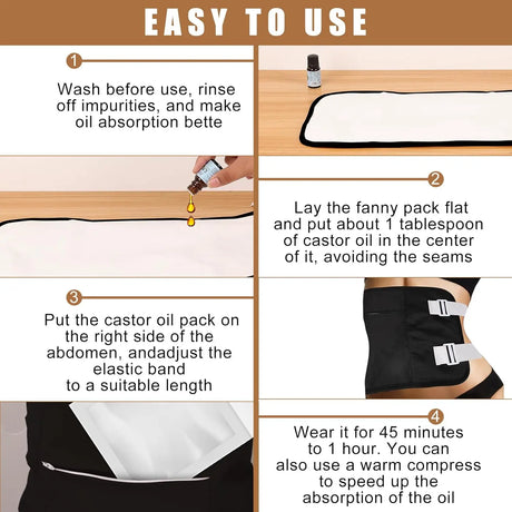 Castor Oil Reusable Organic Cotton Compress Packs With Adjustable Elastic Strap