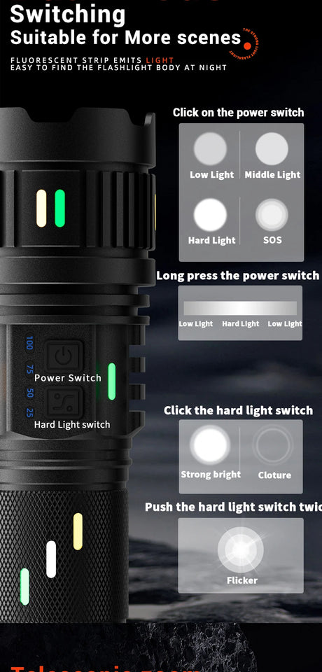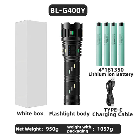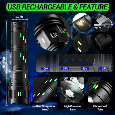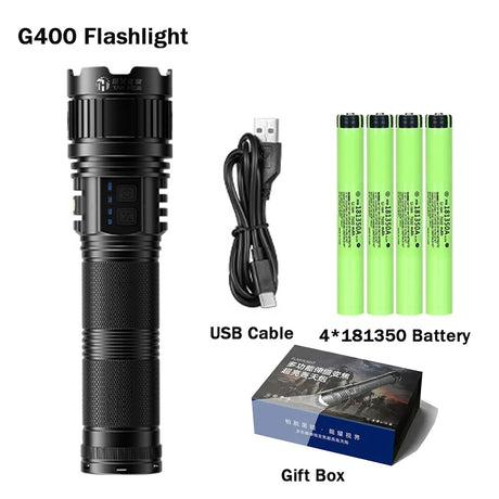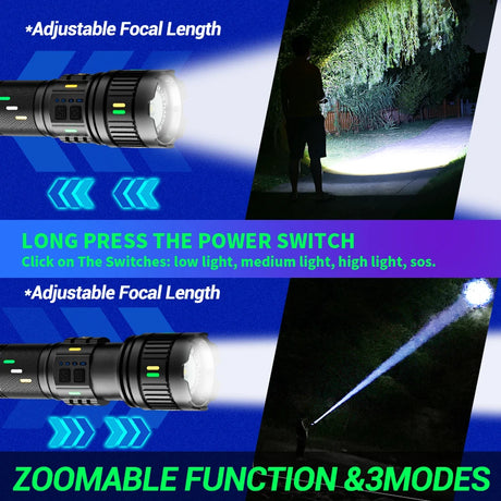 100W Rechargeable Long Range Zoomable LED Flashlight