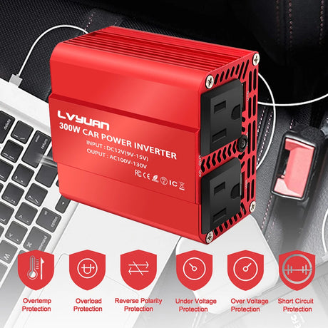 300W Car Power Inverter 12V to 110V Cigarette Lighter Converter USB Plug Auto Accessories