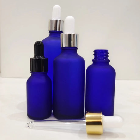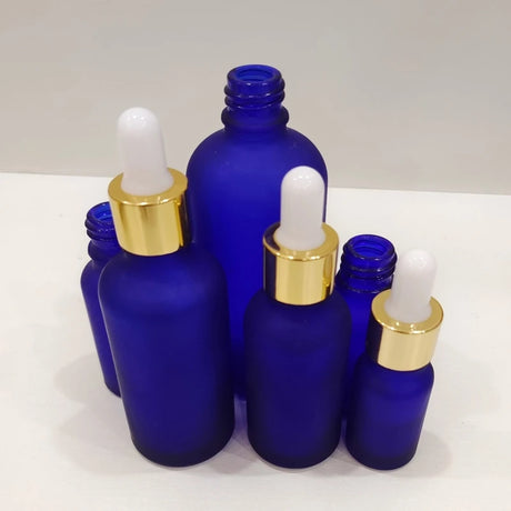 6pcs 5-100ml Frosted Cobalt Blue Glass Dropper Bottle For Essential Oils Aromatherapy