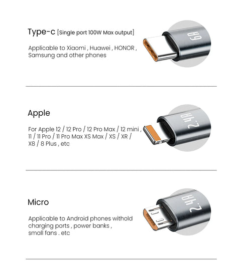 3in1 Retractable Fast Charge USB To 8 pin/Type C 6A 100W USB Cable for iPhone 14 13 12 Pro Max