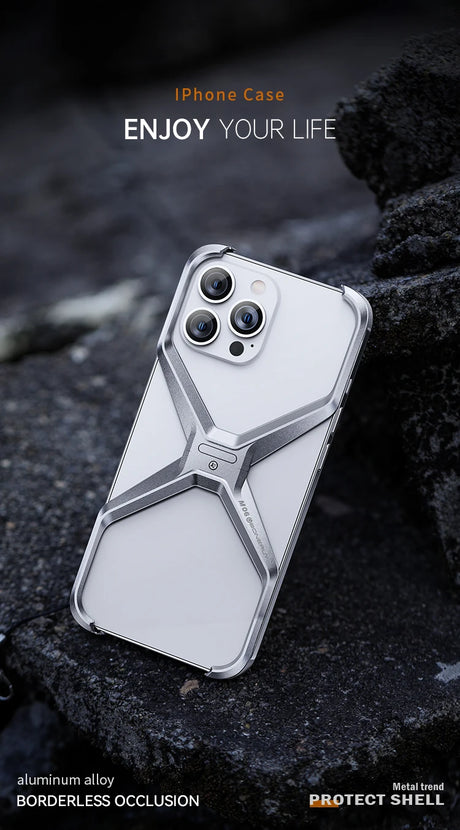 Aluminum Heat Resistant/Shockproof X Type Rimless Phone Cases For iPhone 13 14 15 Pro Max
