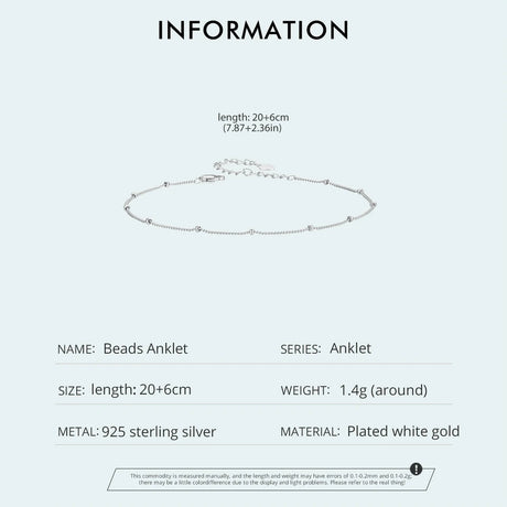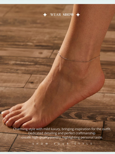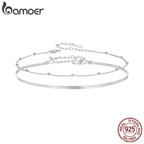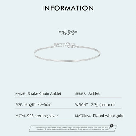 BAMOER 925 Sterling Silver Snake Adjustable Chain Anklet Bracelet