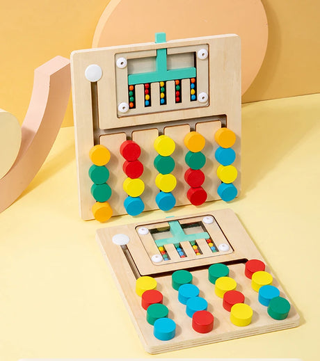Toddlers Wooden Colorful Slide Matching Puzzle Board Game