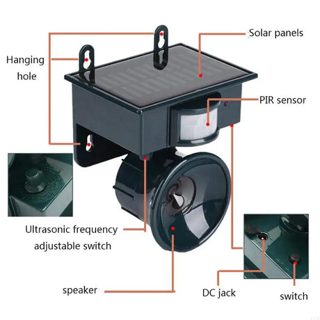 Outdoor Ultrasonic Solar Powered Bird Cat\Dog Mouse Repellent Alarm Sensor