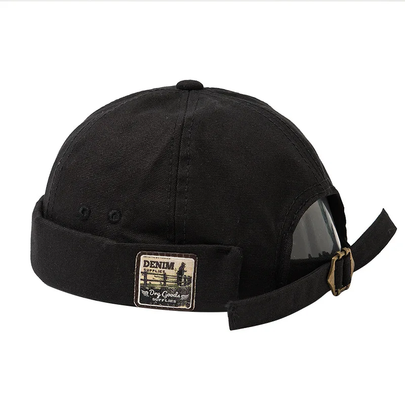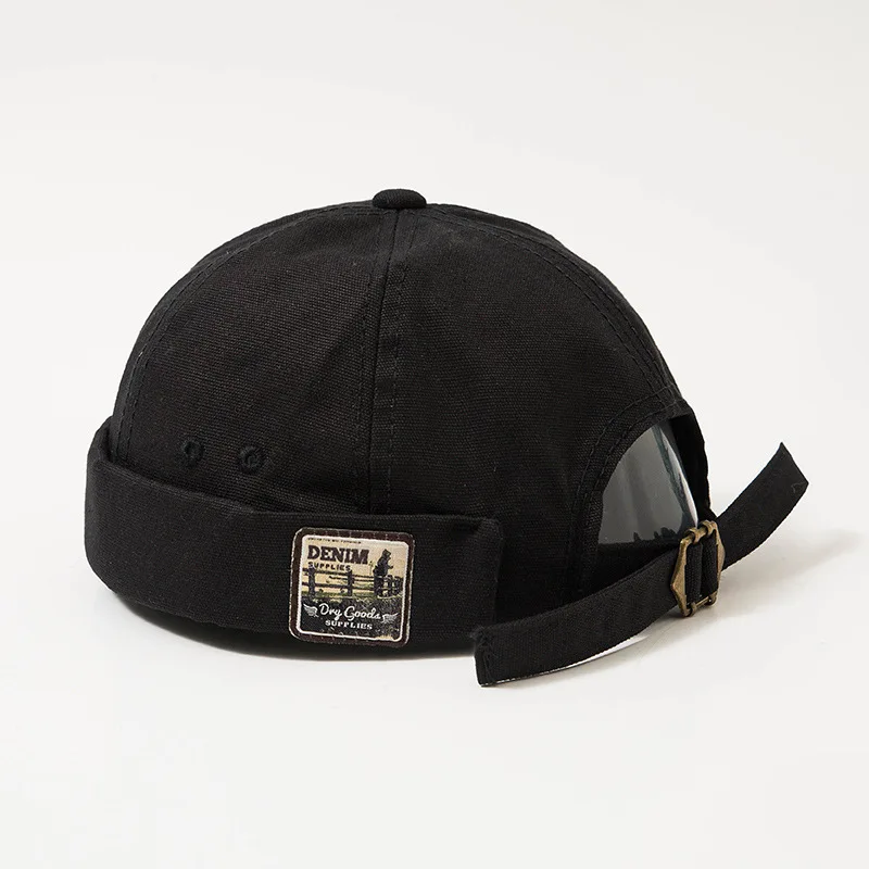 unisex brimless solid color adjustable cotton hat with embroidery on the cuff.