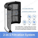 [H13 Grade HEPA Filter]Sealed HEPA Filter Captures 99.97% of particles as small as 0.3 Micrometres such as dust, smoke, odors and dander. Keep the air clean and fresh in your home. Activated Carbon Filter absorbs household odor and harmful gases.