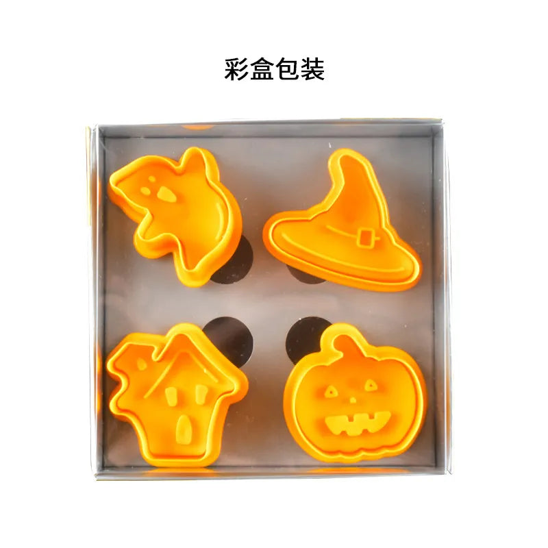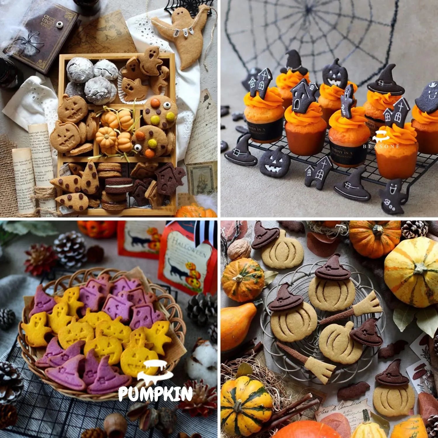 1,Designed for Halloween: 4 pcs combination cookie stamper set, Halloween element stamper, providing the nice art decoration for your biscuits, including haunted house, witch hat, ghost and pumpkin
