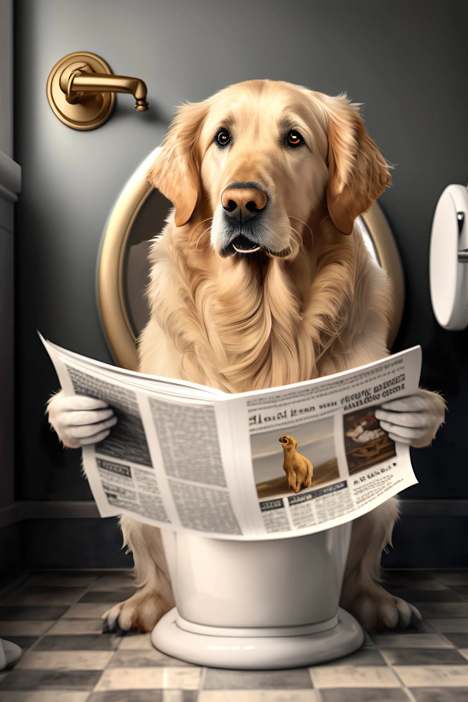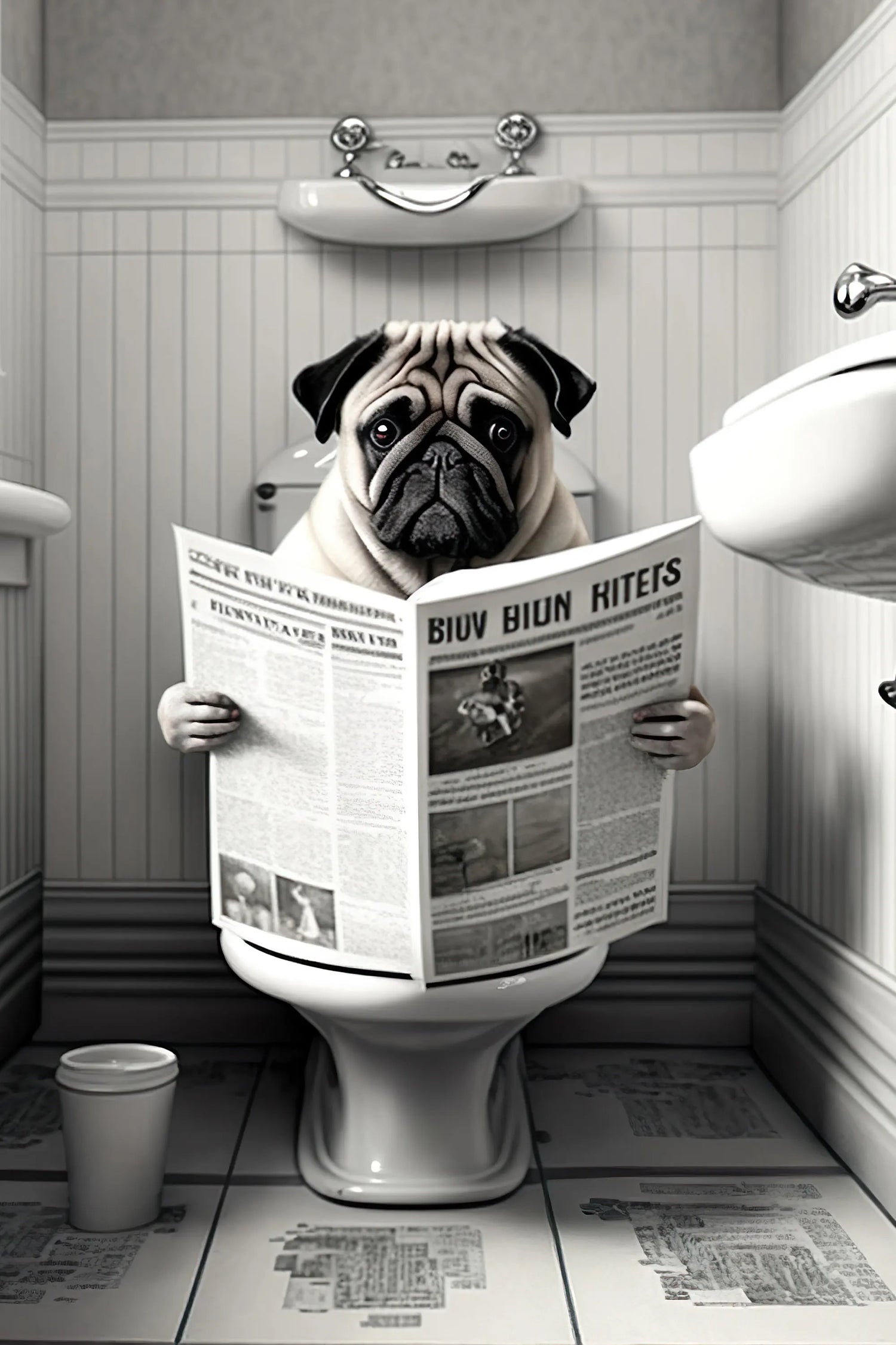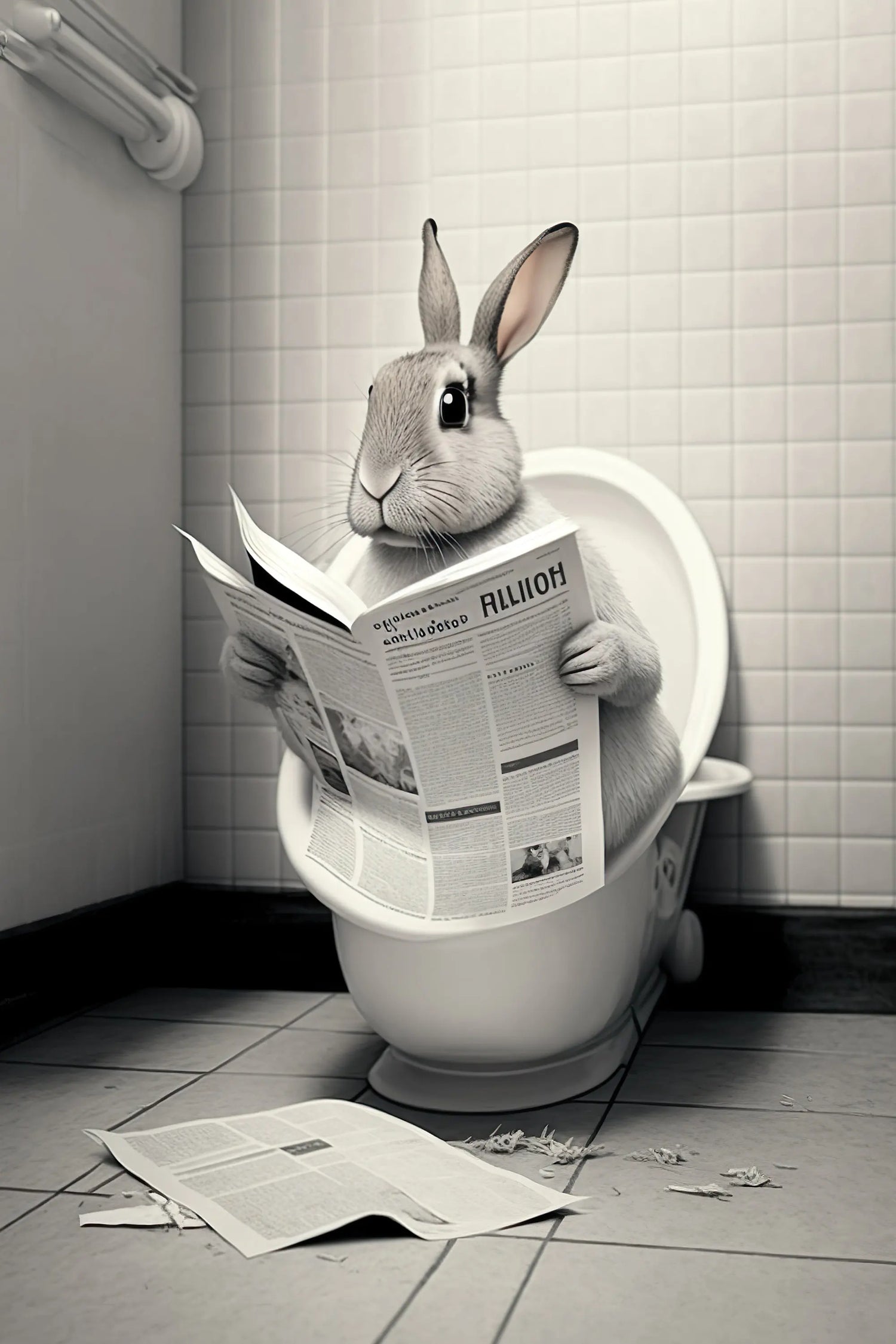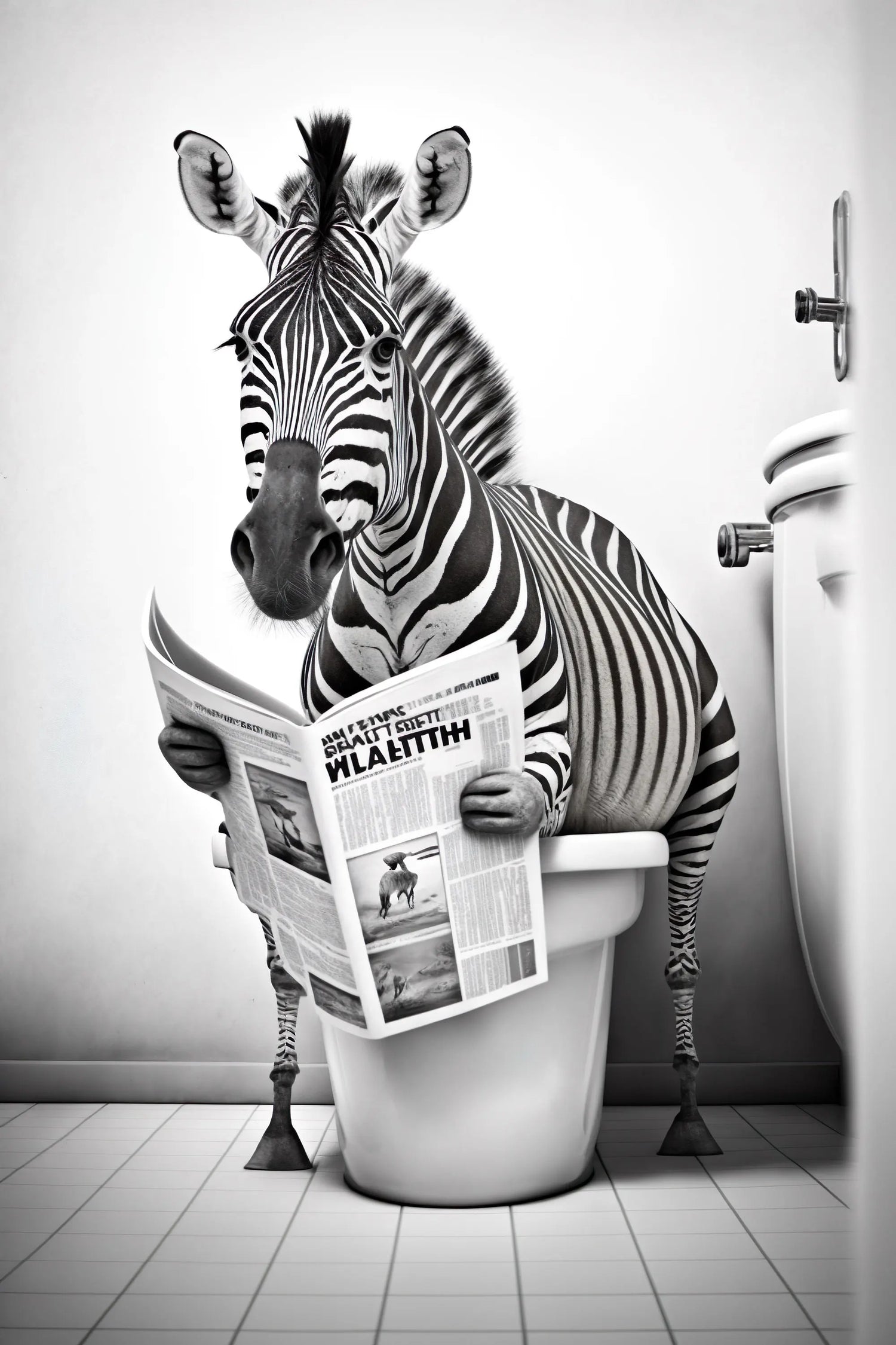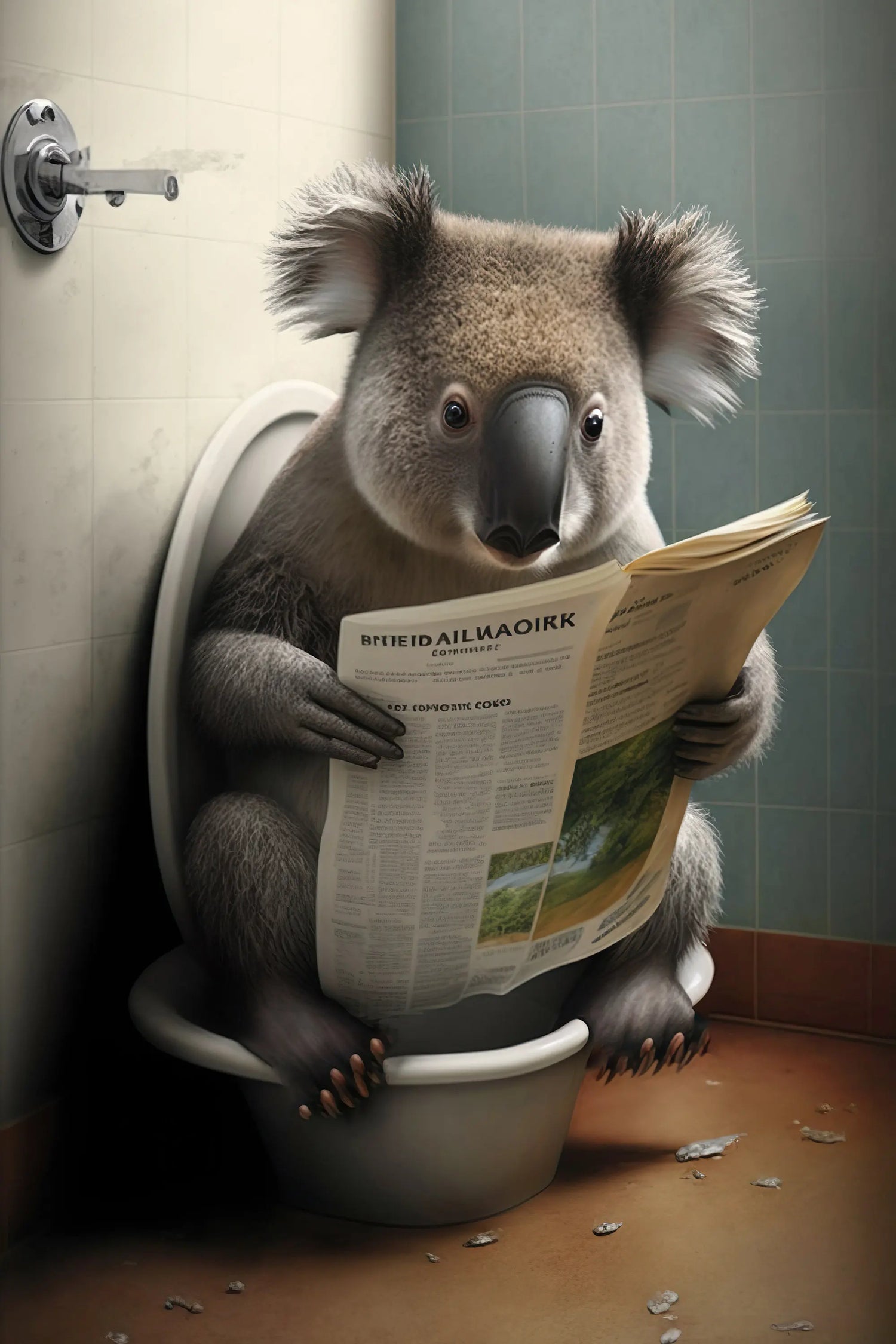 Bathroom Canvas Painting Prints Of Animals Sitting on Toilet Reading The Newspaper - 18 / 50x70cm Unframed is backordered and will ship as soon as it is back in stock.