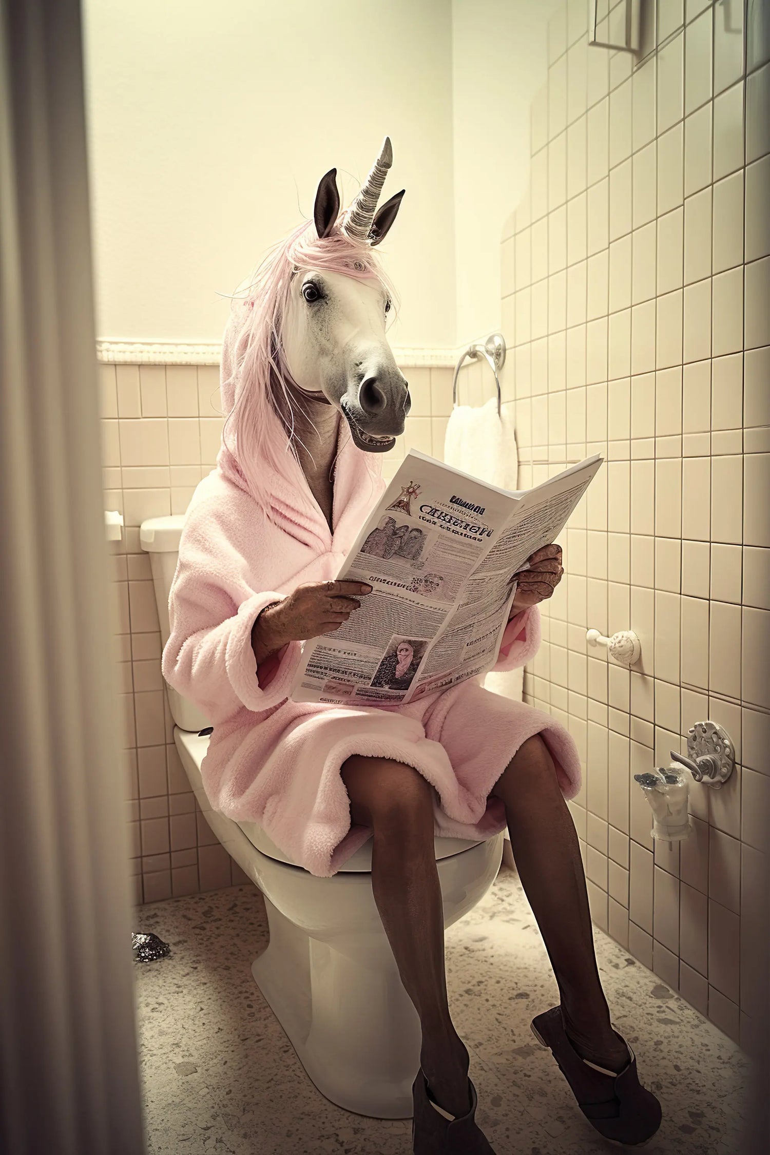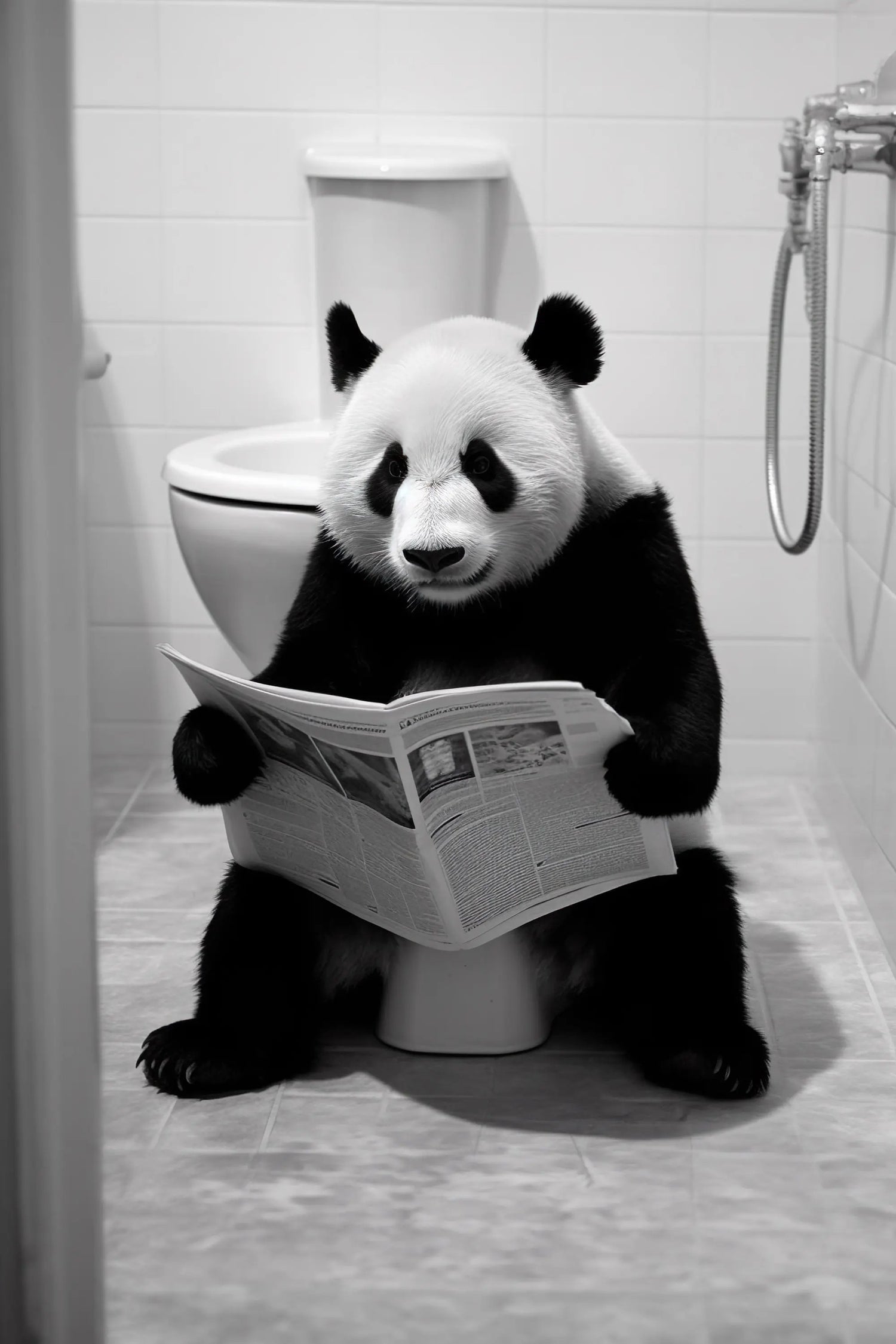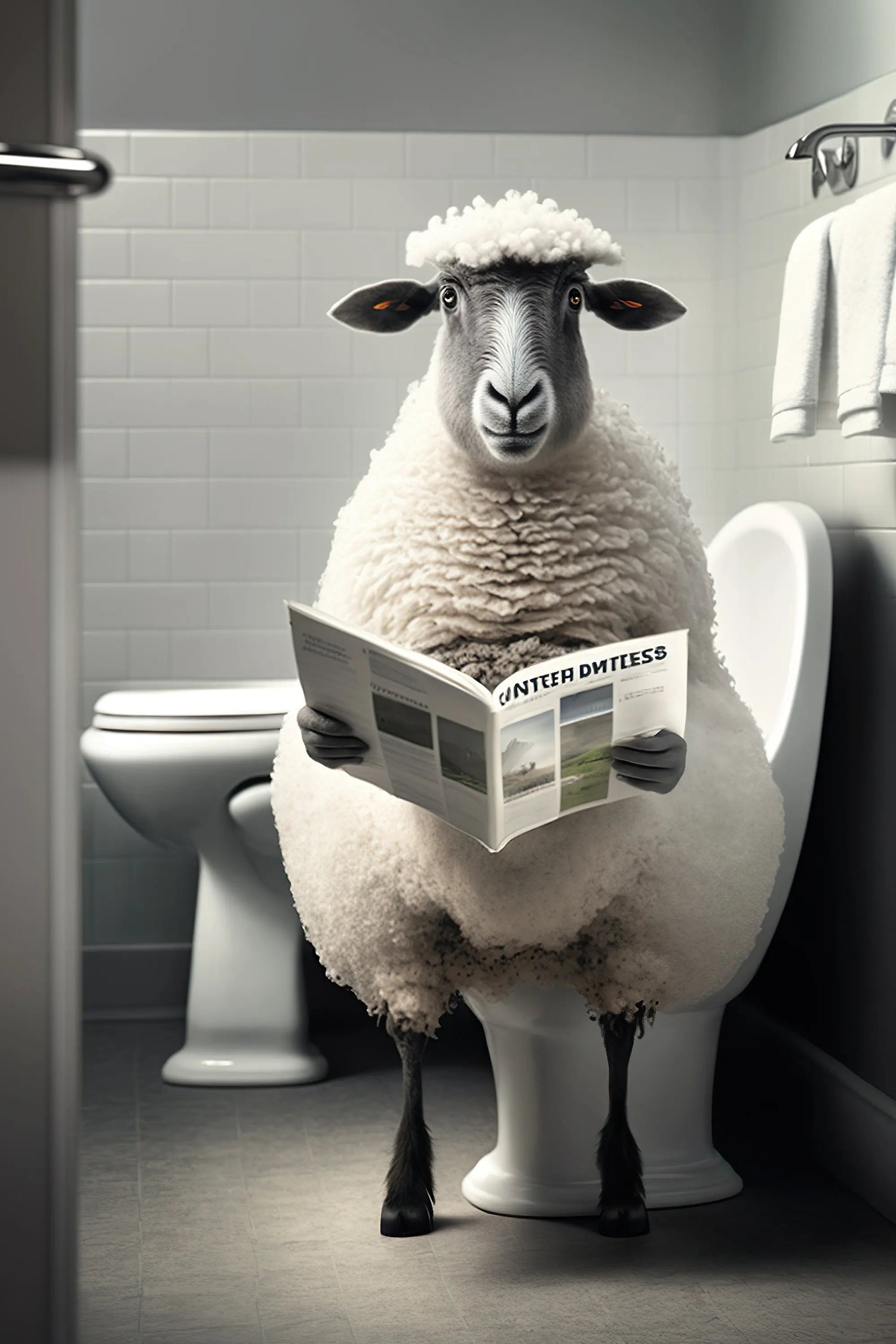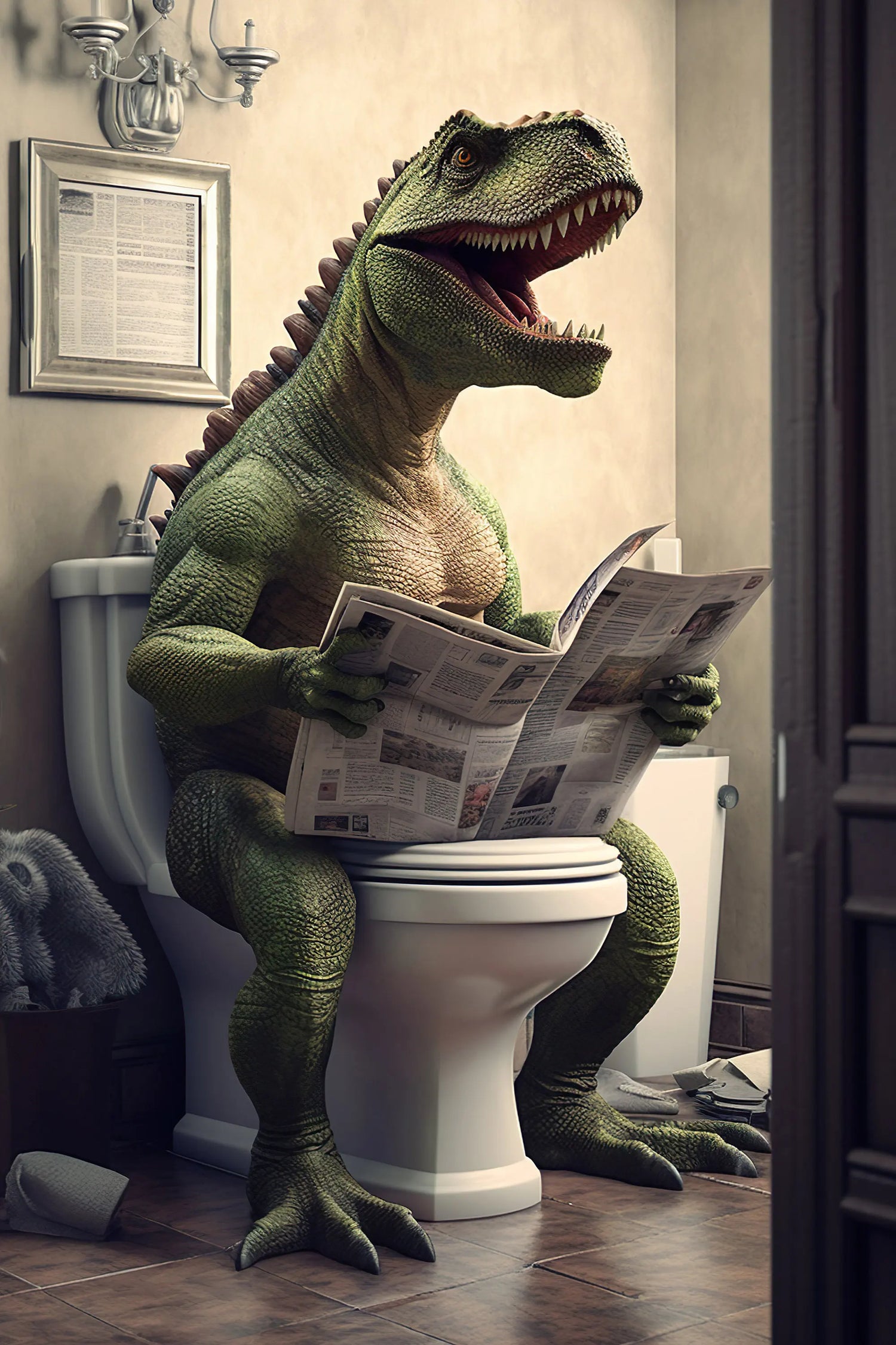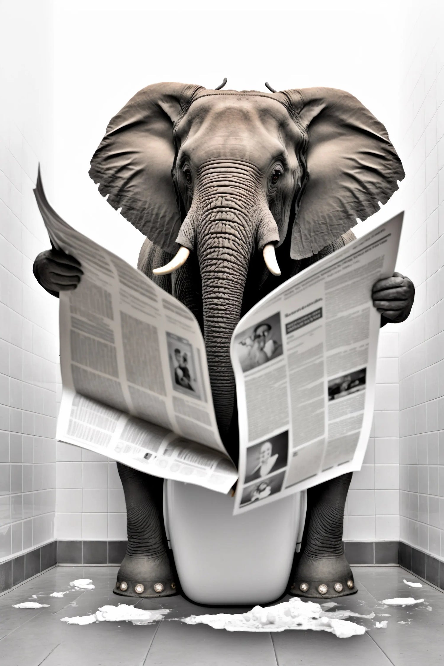 Bathroom Canvas Painting Prints Of Animals Sitting on Toilet Reading The Newspaper - 18 / 50x70cm Unframed is backordered and will ship as soon as it is back in stock.