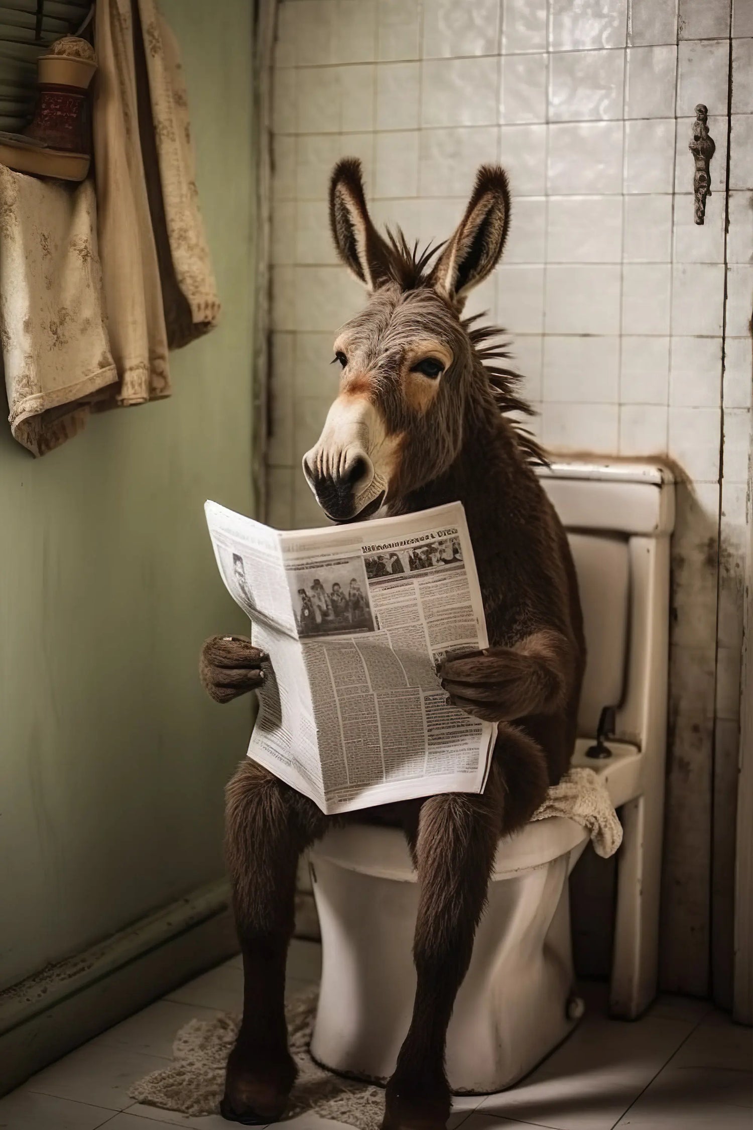 Bathroom Canvas Painting Prints Of Animals Sitting on Toilet Reading The Newspaper