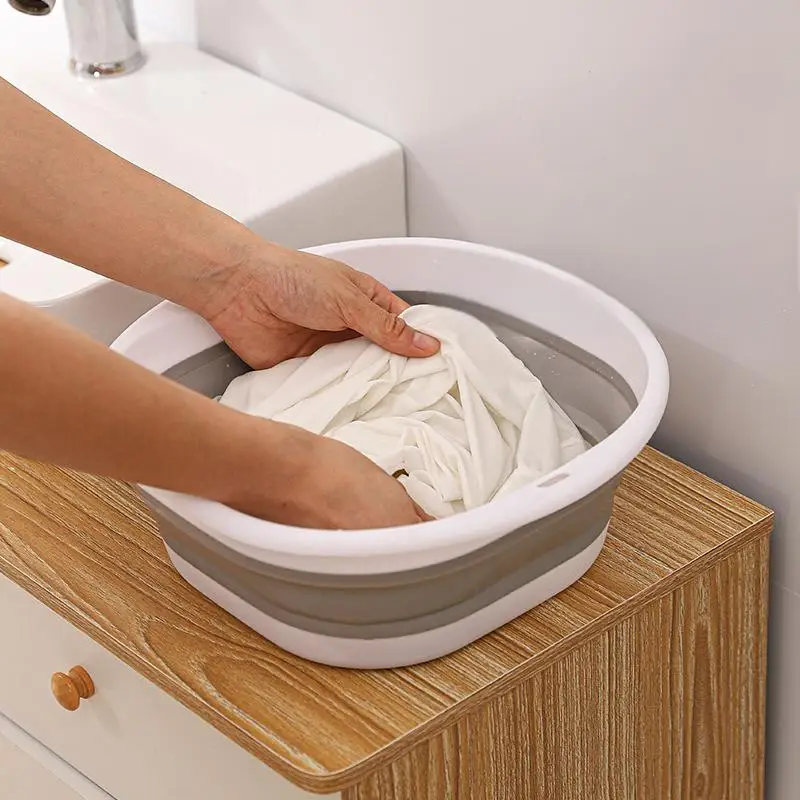 Multifunctional folding basin: The foldable bucket can be used for washing dishes, washing vegetables and fruits, mops, washbasins, washing small clothes and soaking dirty clothes.